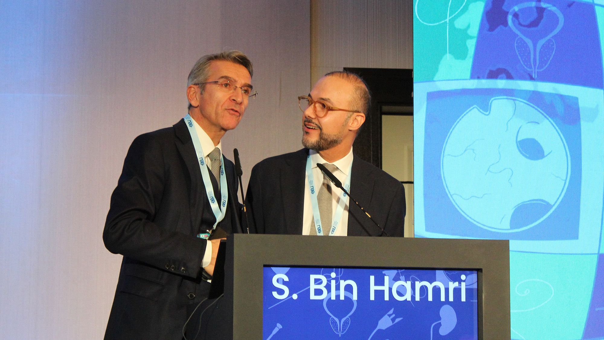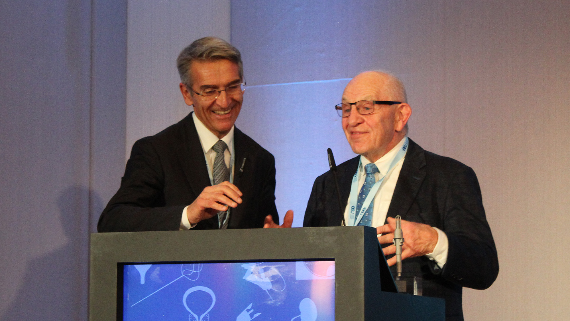 Prof. Traxer on stage with Dr. Altshuler after the latter’s presentation.